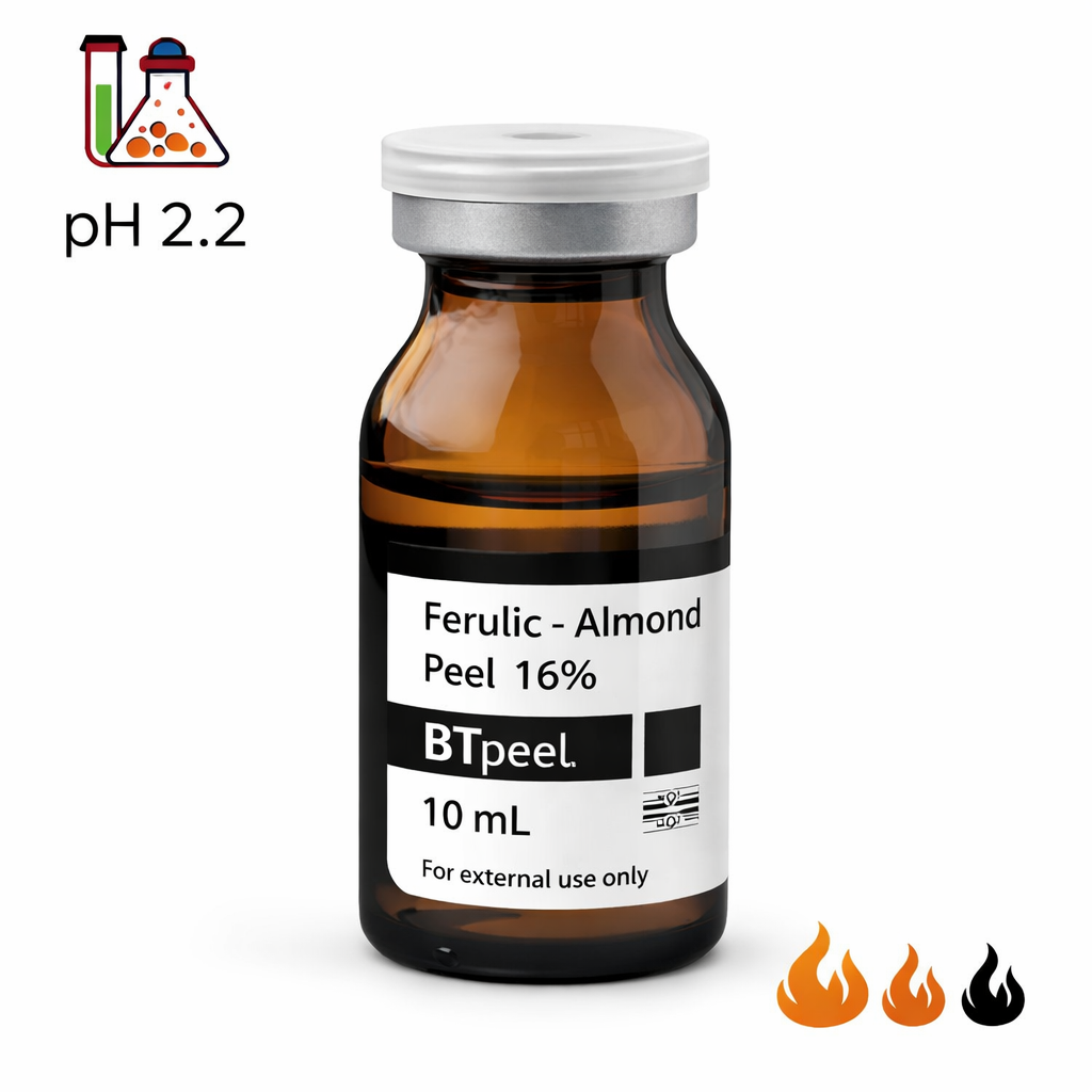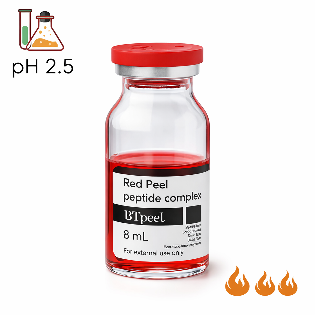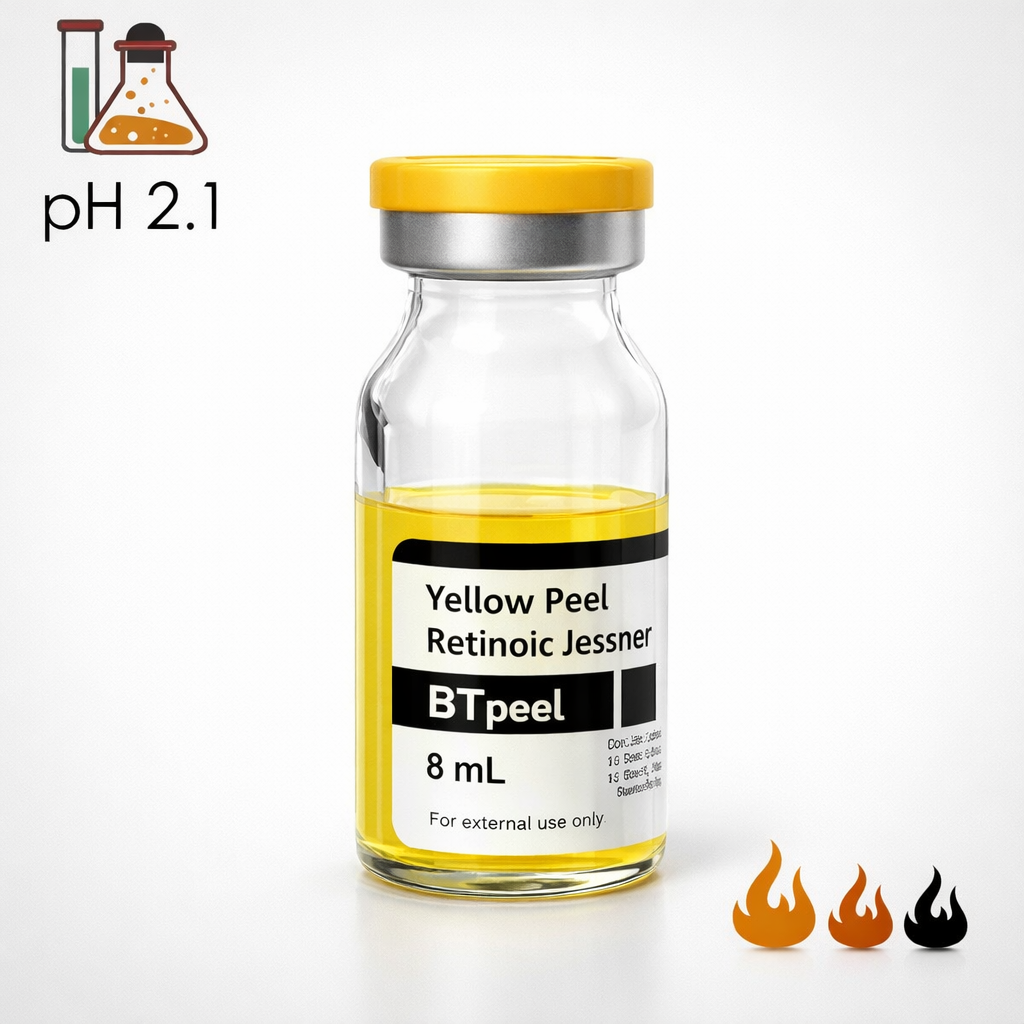 Сокращенное время экспозиции. Кислоты усиливают действие друг друга. Вызывает сильное шелушение. Омолаживает, борется с видимыми признаками старения. Нормализует работу сальных желез.