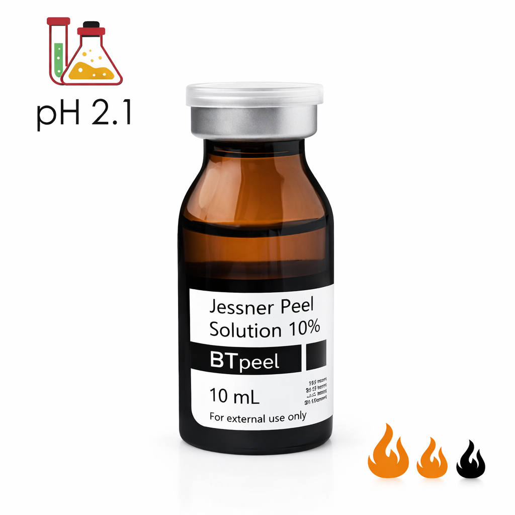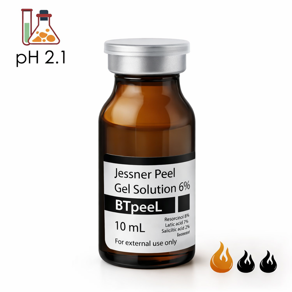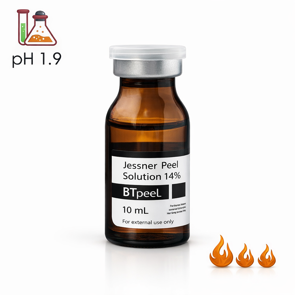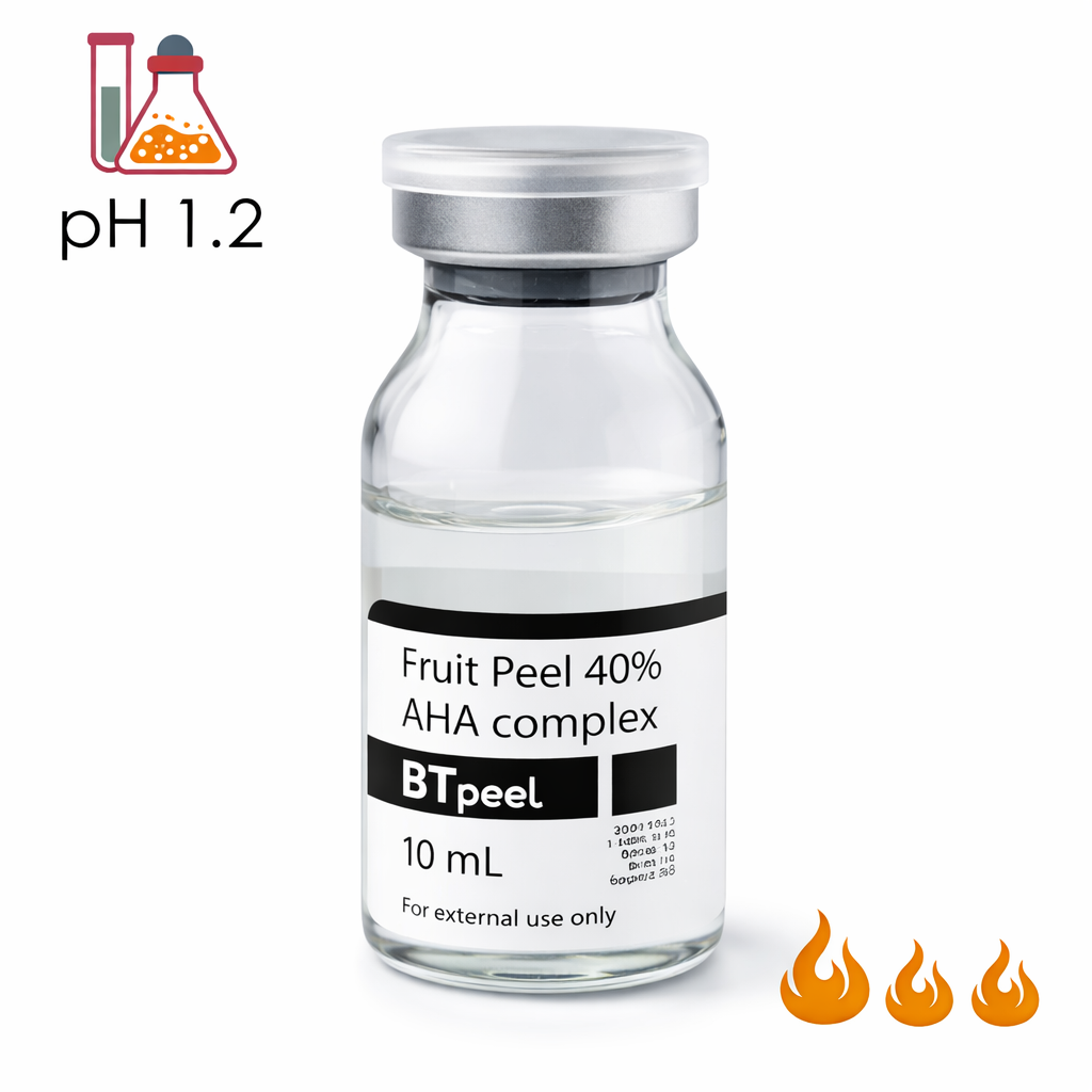 Сокращенное время экспозиции. Кислоты усиливают действие друг друга. Вызывает сильное шелушение. Омолаживает, борется с видимыми признаками старения. Нормализует работу сальных желез.